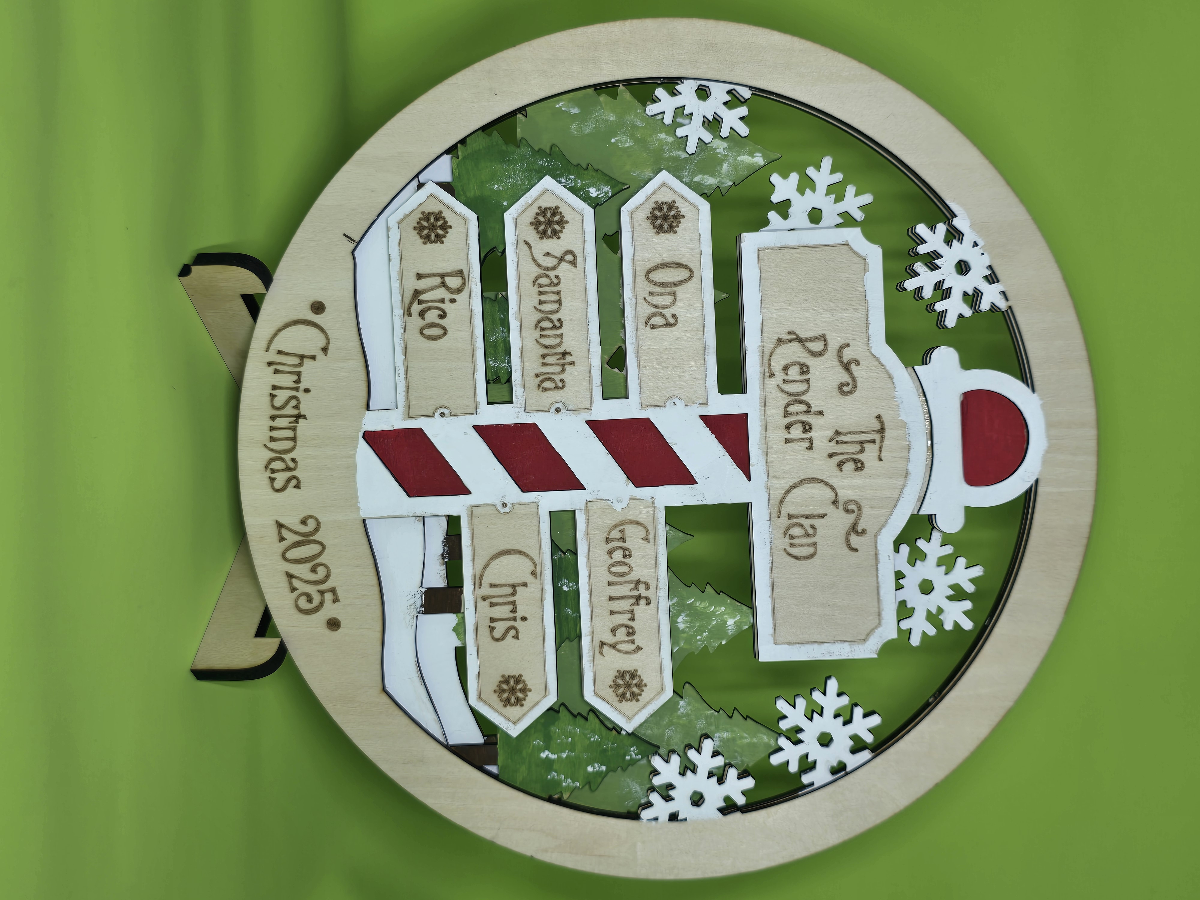 This hand painted engraved sign will surely make your all time favorite Christmas decoration. The sign measures almost 7" in diameter. Your sign comes with 2 options for display- a holder and a hanging bracket on the back.