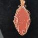 This is a truly one of a kind pendant. I hand carved this out of a block of pipestone that I received from a Native American friend. He told me to make something beautiful, so I did. Pipestone is a very sacred stone that is mined not too far from where I live in Minnesota. I am very grateful and thankful to be able to work with this stone. The stone is finished with traditional beeswax to give it the dark red color. I used copper wire to accent the redness of the stone. The stone has round inclusions that break up the solid color of the stone. Native legend has it that each little circle is where a sacred spirit has touched. If that is the case, then this necklace is truly blessed.